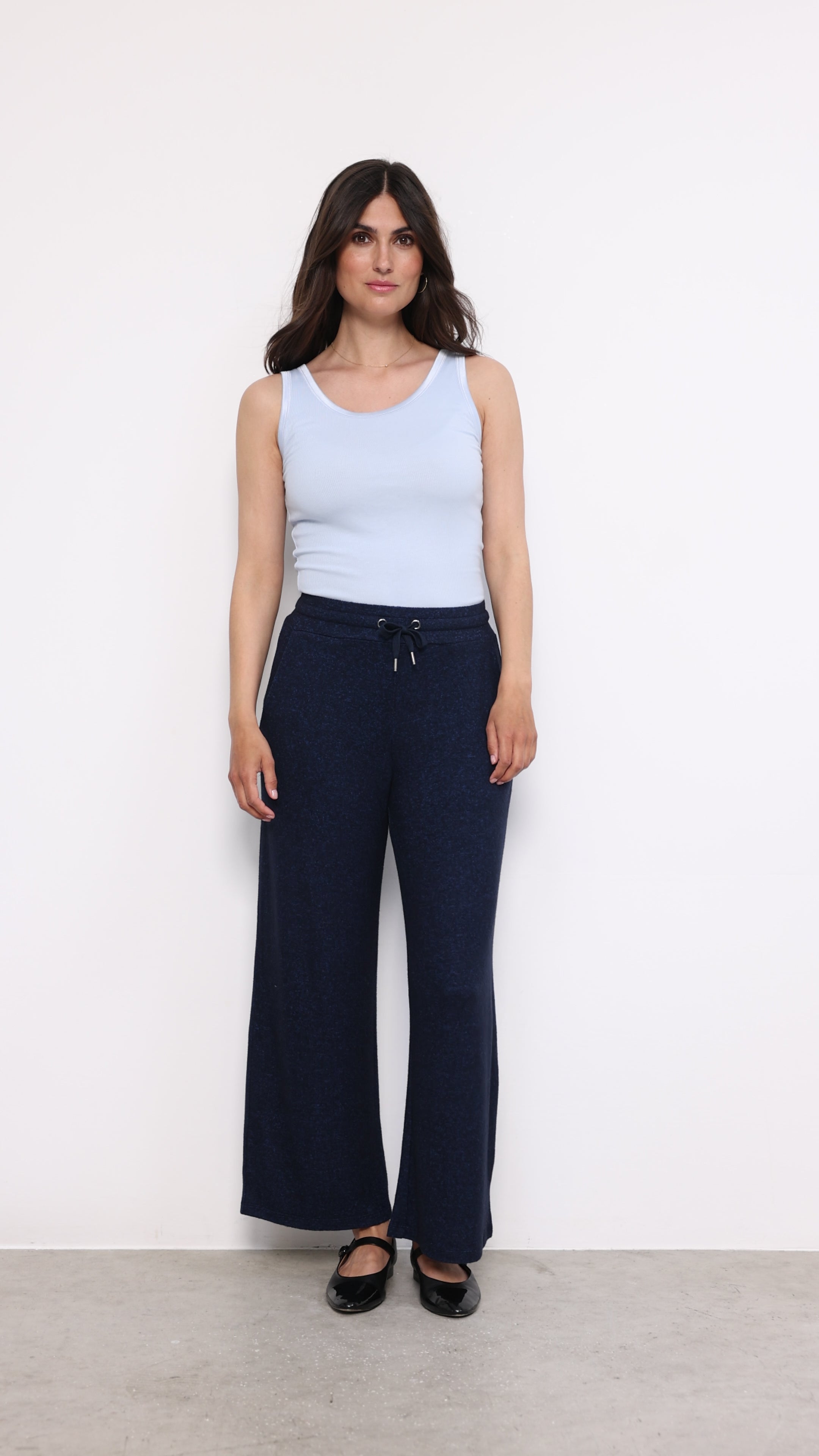 Biara 74 is a comfortable pair of pants made from LENZING™ ECOVERO™ viscose and polyester blend. They have elastic and tie strings at the waist and a loose fit. These soft sweat pants are perfect for days at home.