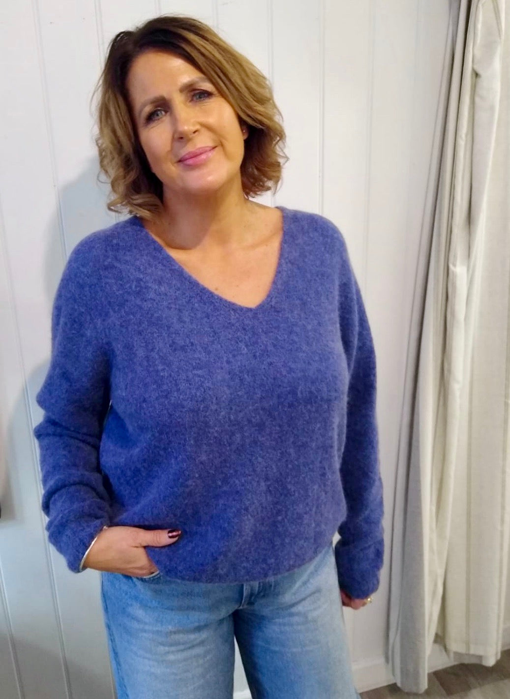 A seriously soft alpaca mix, crop knit with a v neck line.
