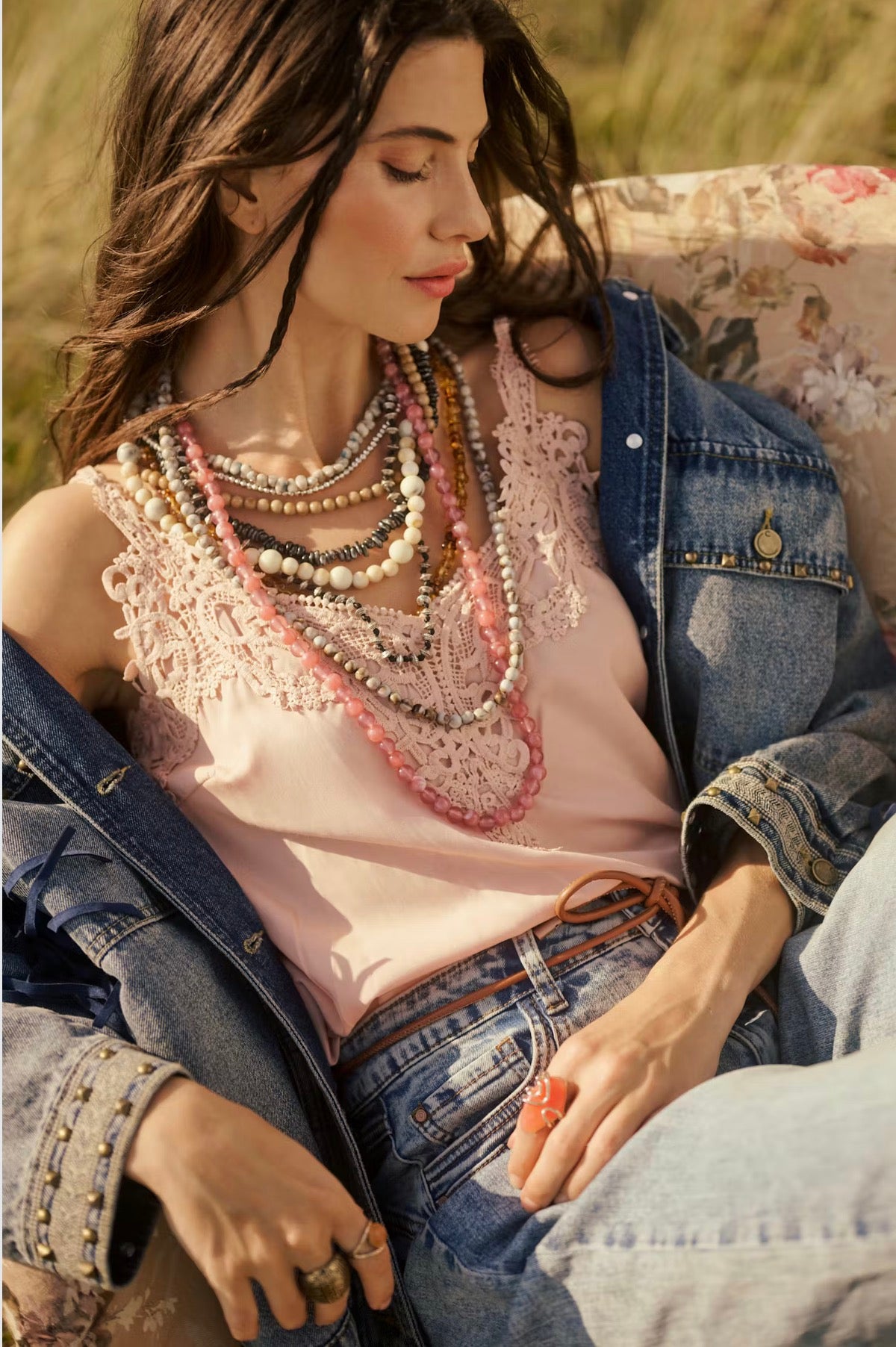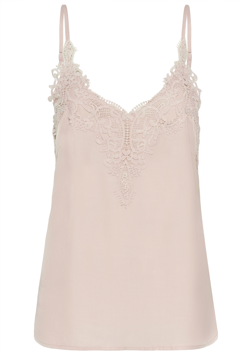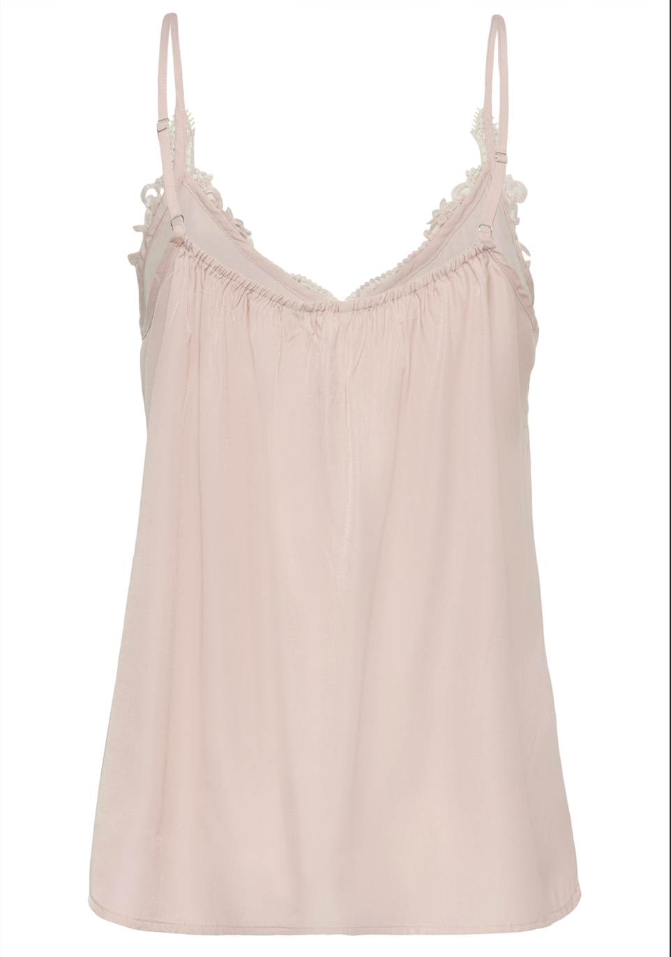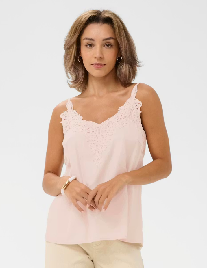 This women's camisole top features a regular fit with a delicate V-neckline and lace trim detail. Adjustable spaghetti straps ensure comfort for both casual and elegant occasions. Ideal for versatile outfit combinations.