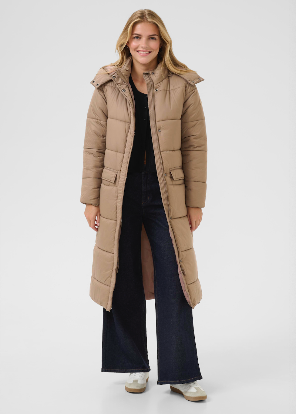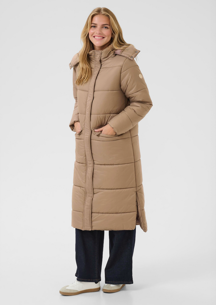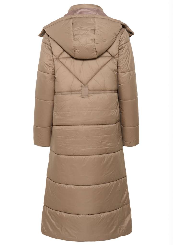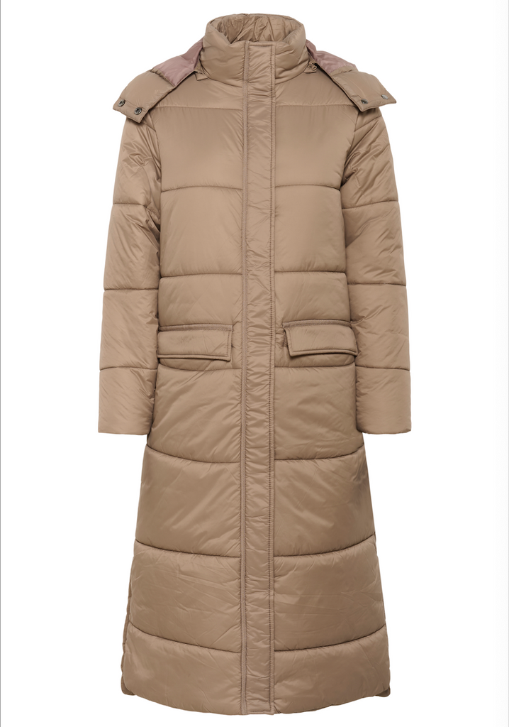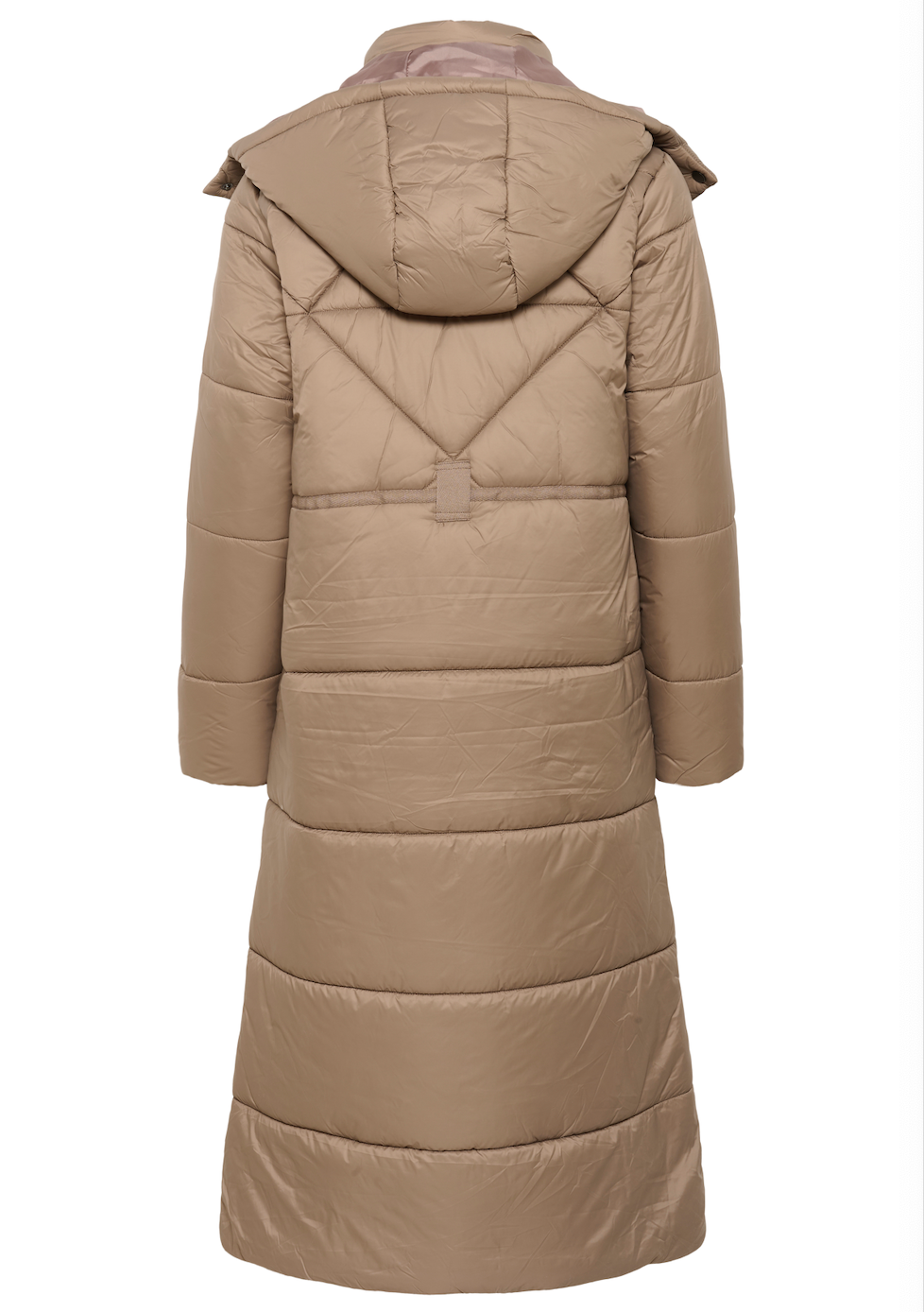 A stunning down lined coat in a warm fossil colour to sit over any colour combo.