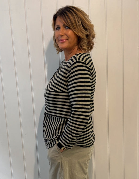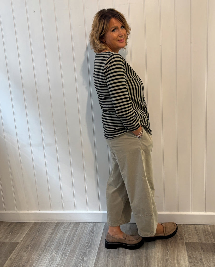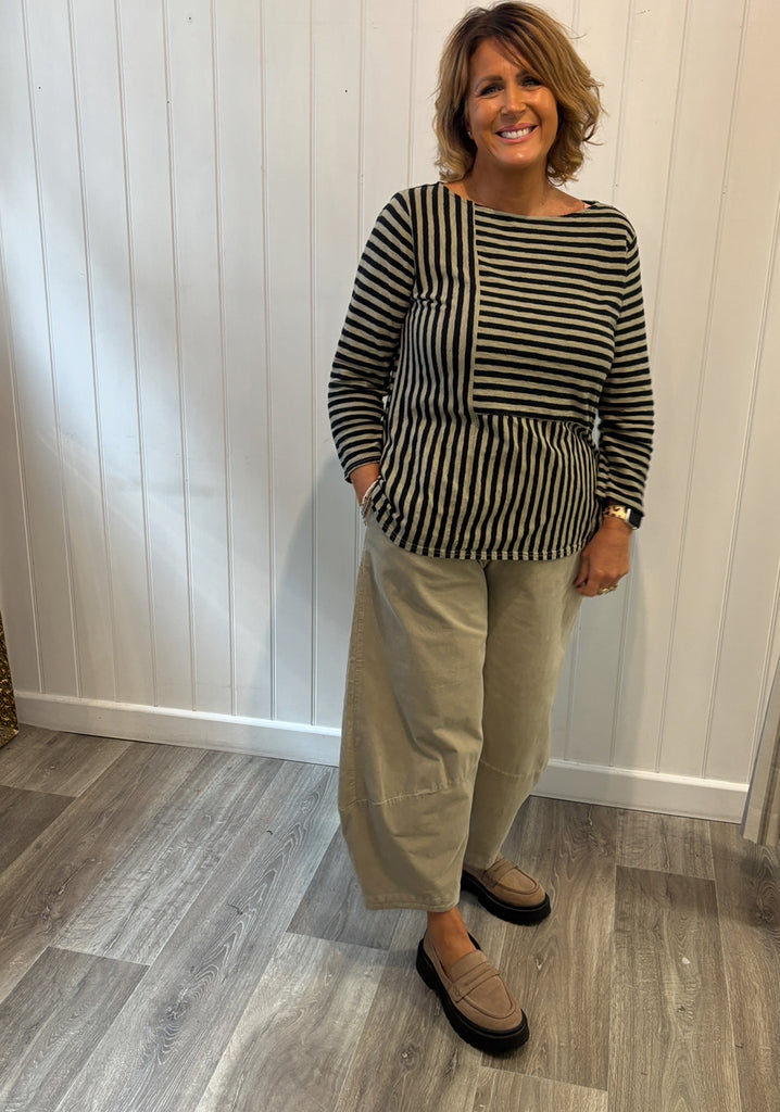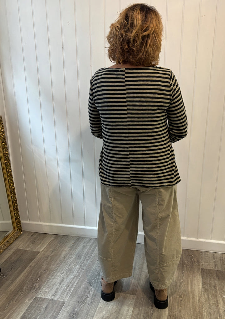 Patch A-Line Boatneck Striped Top in Lentil