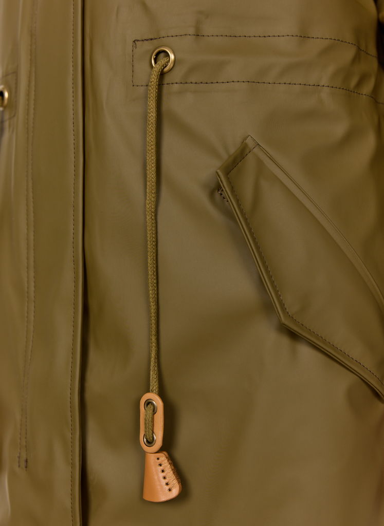 Alexa 1 is a nice raincoat in 100% polyrethan. This nice jacket has a hood, two pockets and tie strings at the waist. It is perfect for the wet weather, and will keep you dry and warm at all times.