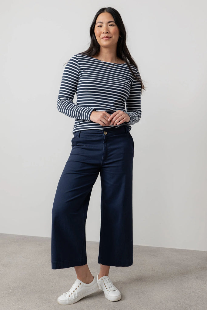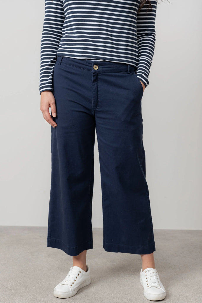 A great alternative to traditional straight leg chinos, the Isla twill trousers are cut in a cropped, wide-leg silhouette and are a great outfitter piece to dress up or down with a pretty blouse or your favourite t-shirt.