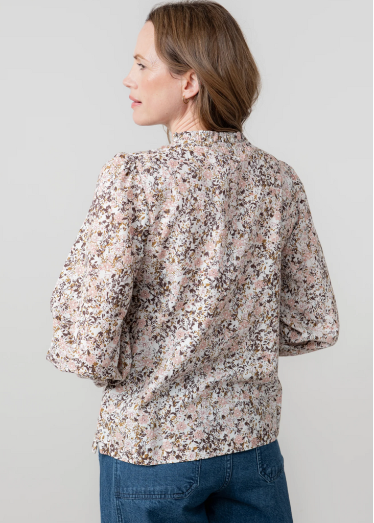 Slightly blouson long sleeves with gathering at the buttoned cuffs adds to the feminine feel. Elevate your favourite denim for a beautiful day to evening look.