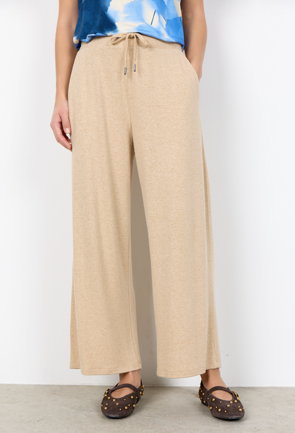 Biara 74 is a comfortable pair of pants made from LENZING™ ECOVERO™ viscose and polyester blend. They have elastic and tie strings at the waist and a loose fit. These soft sweat pants are perfect for days at home.