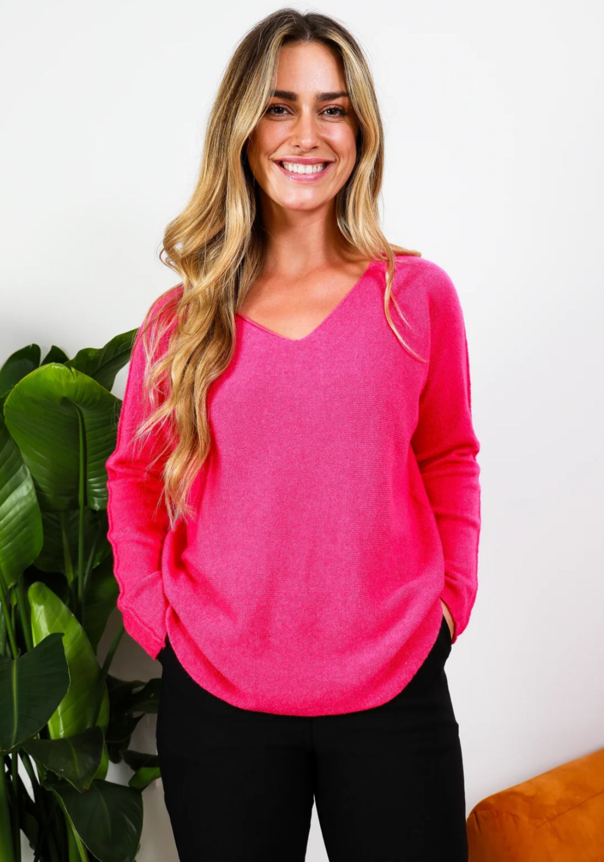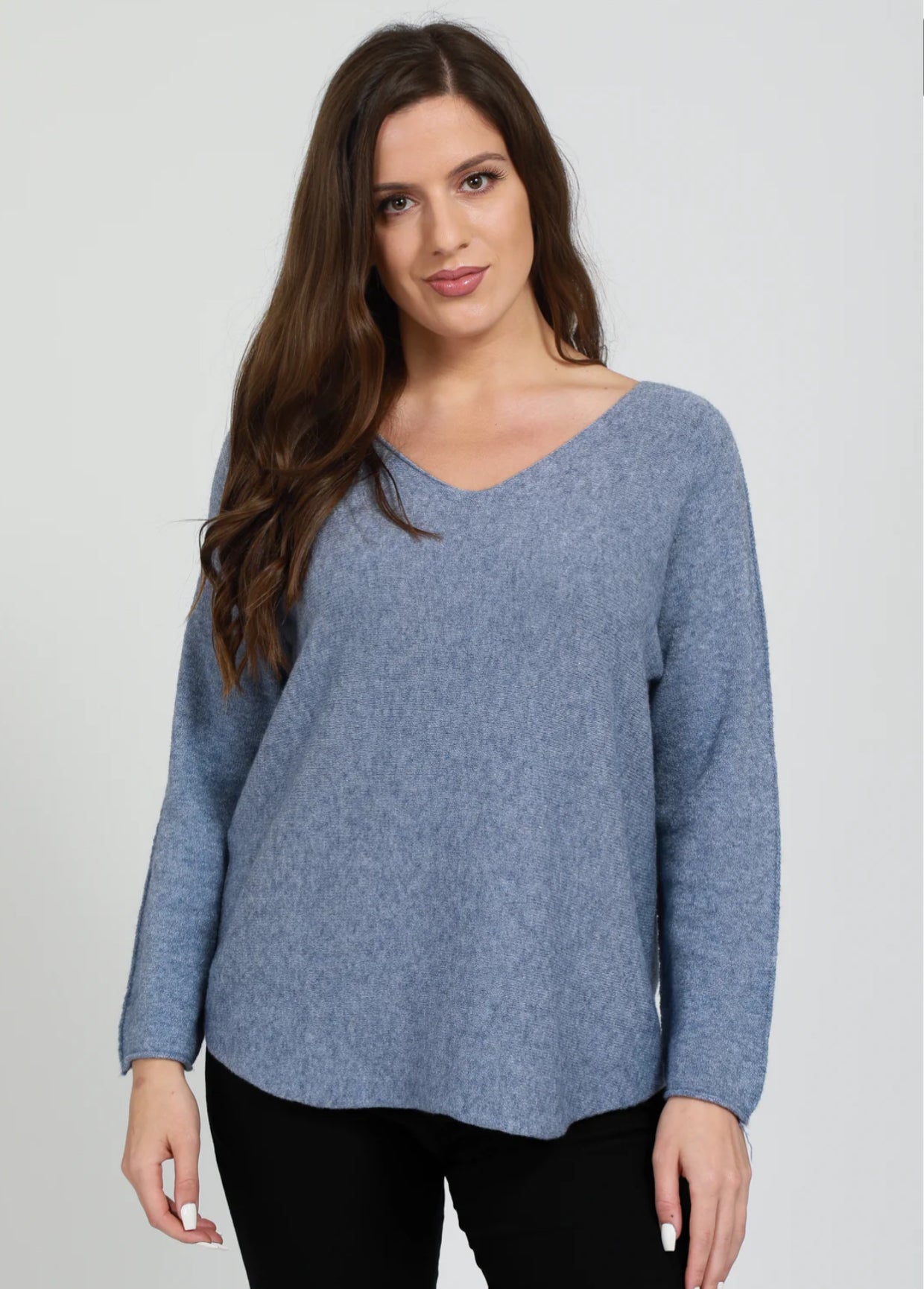 A fabulous one size piece sweater in a chunky cashmere mix. A neat cut with a cute curved hem.