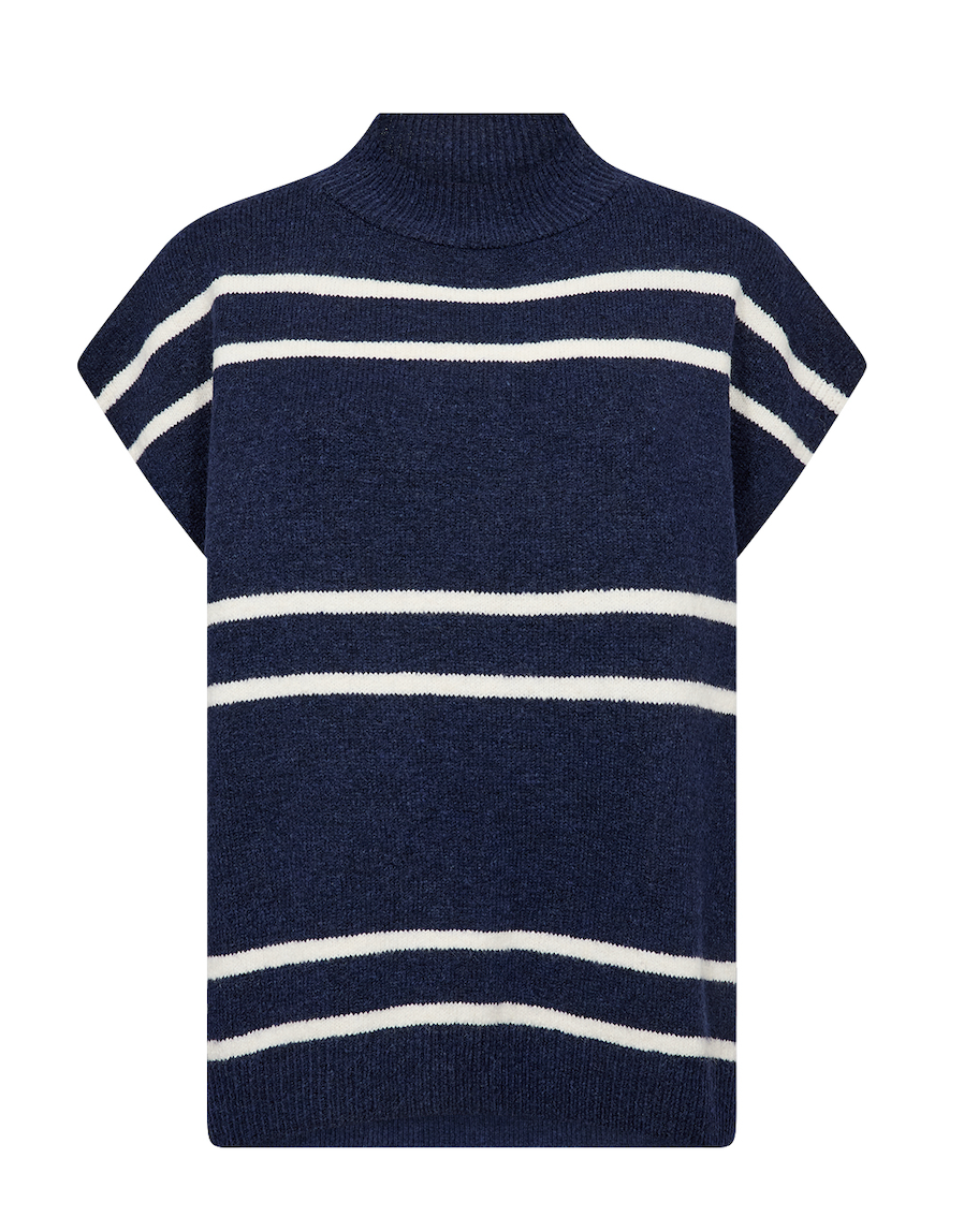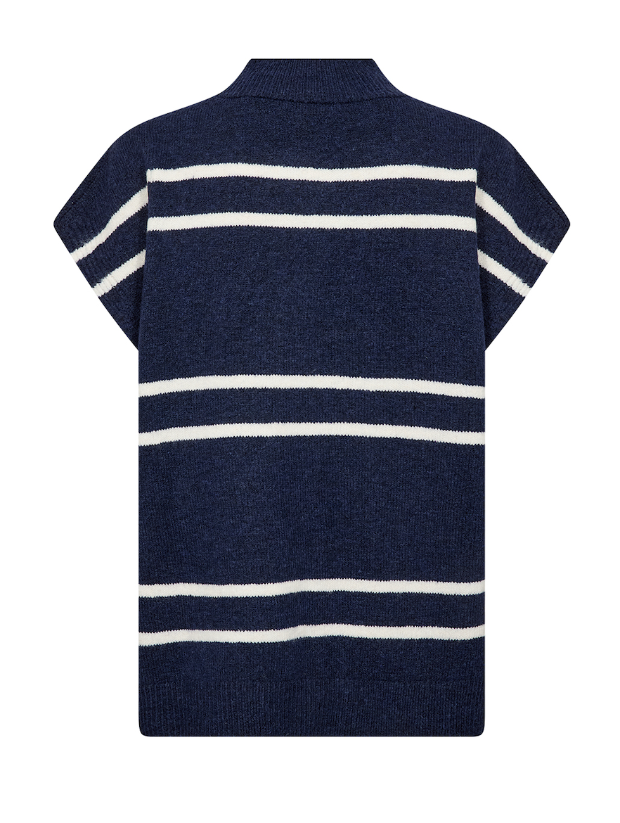 BIANCA 1 is a Waistcoat made from 65% Polyester, 13% Acrylic, 13% Nylon, 6% Wool, 3% Elastane. It features a ribbed collar, cap sleeves, and a clean striped pattern. Pair it with tailored pants or a pencil skirt for an elegant look.