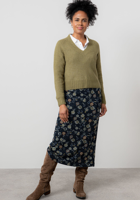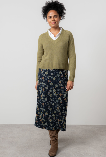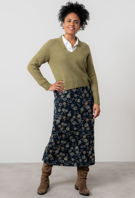 An easy wearing printed midi. The Melissa skirt is soft and super comfortable made from a brushed recycled knit fabric, offering a warm handfeel.