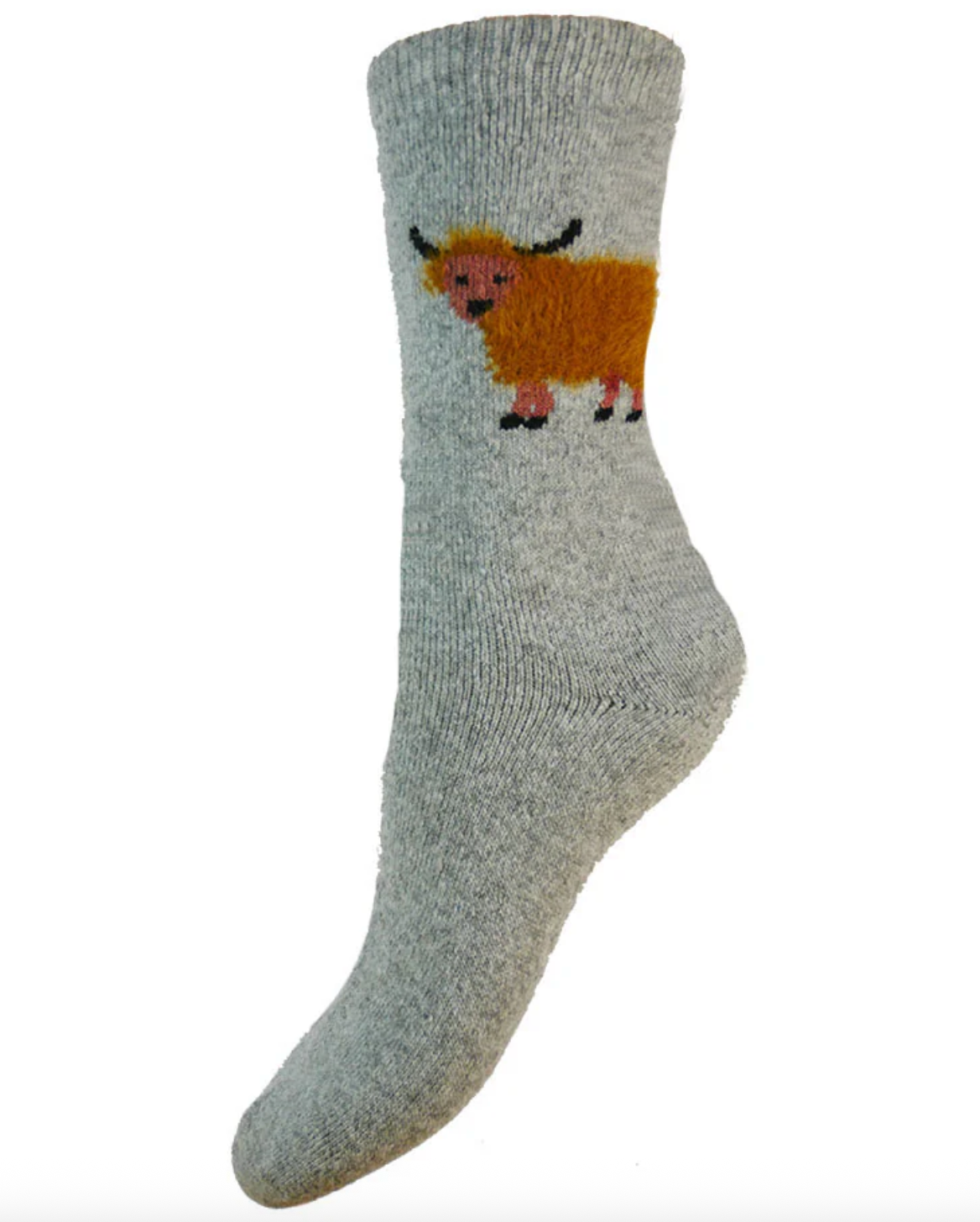 Thick Wool Blend Fluffy Highland Cow Socks.