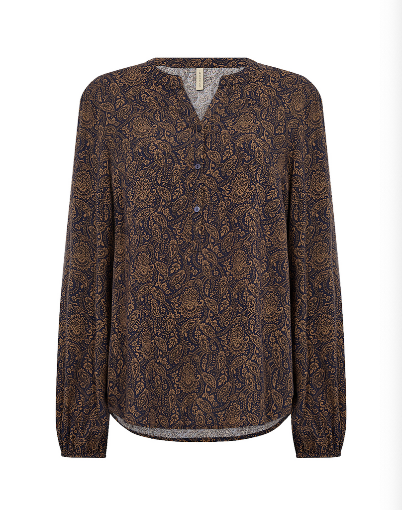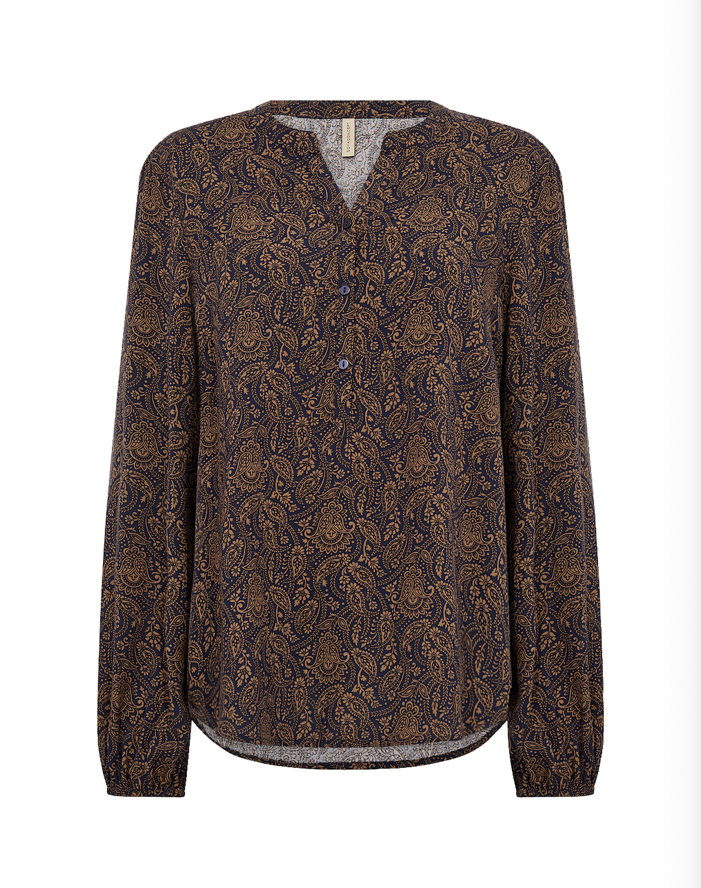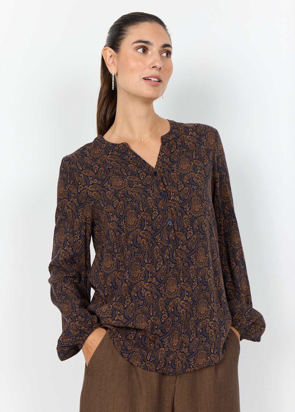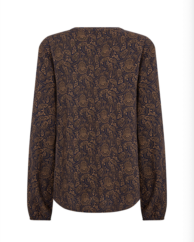 ASTER 1 is a blouse crafted from 100% LENZING™ ECOVERO™ Viscose. It has a sophisticated V-neckline, front button closure, and a delicate paisley print. Pair it with tailored trousers for an elegant look or jeans for a more casual style.