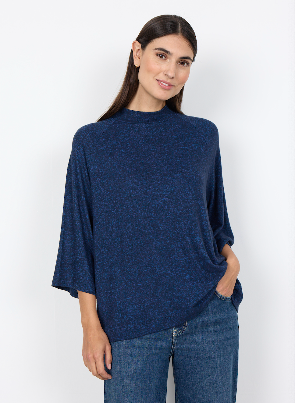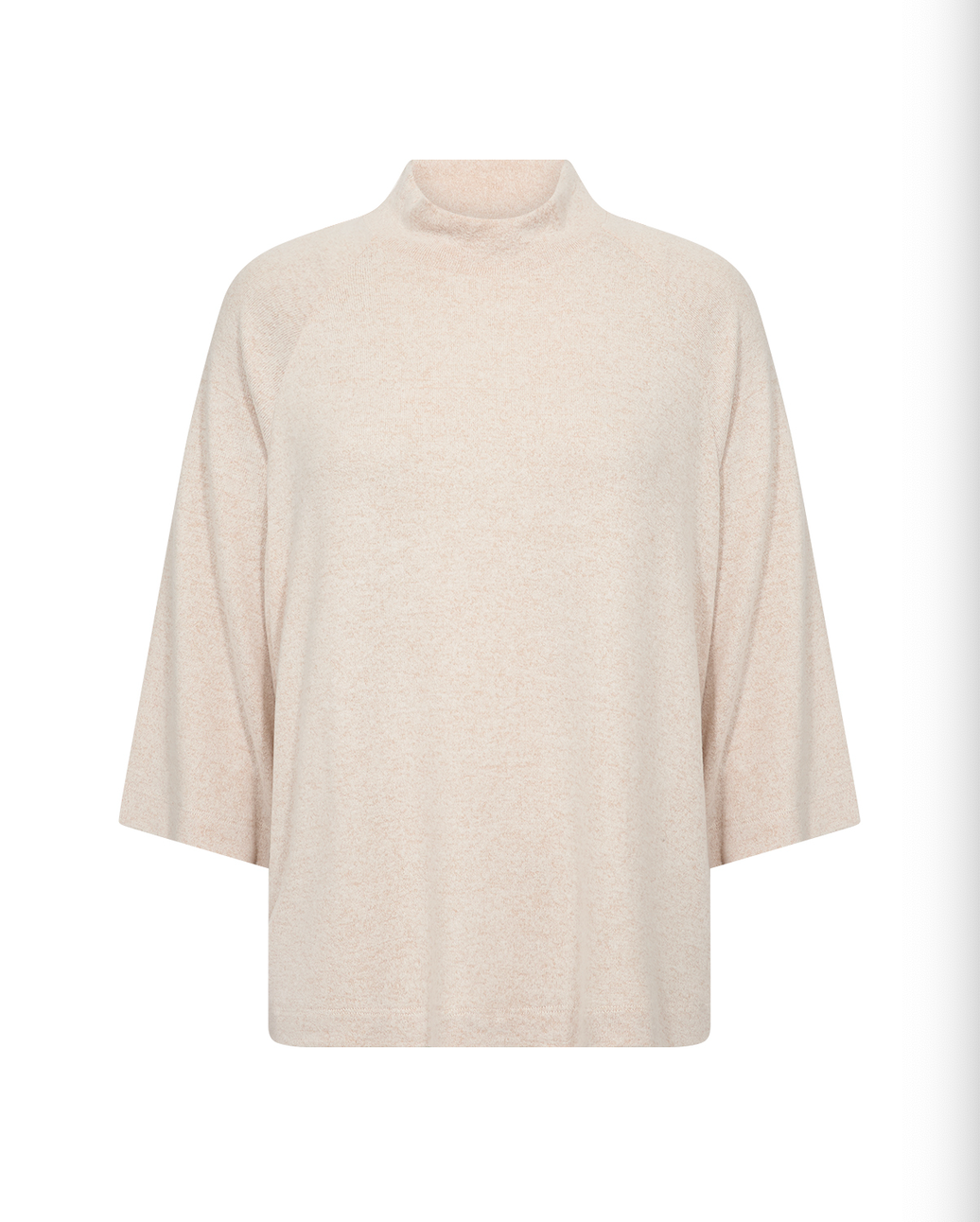 BIARA 151 Pullover is crafted from 74% LENZING™ ECOVERO™ Viscose, 21% Polyester, 5% Elastane. This pullover features a high neckline, three-quarter length sleeves, and a relaxed fit with a subtle mottled texture. Pair it with tailored trousers or jeans for an elegant look.