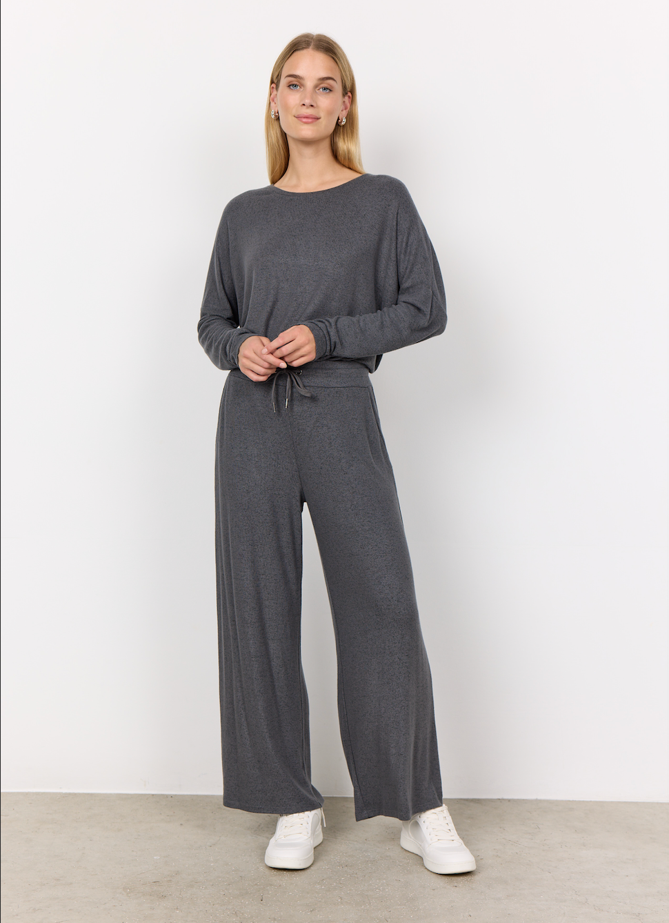 Biara 74 is a comfortable pair of pants made from LENZING™ ECOVERO™ viscose and polyester blend. They have elastic and tie strings at the waist and a loose fit. These soft sweat pants are perfect for days at home.