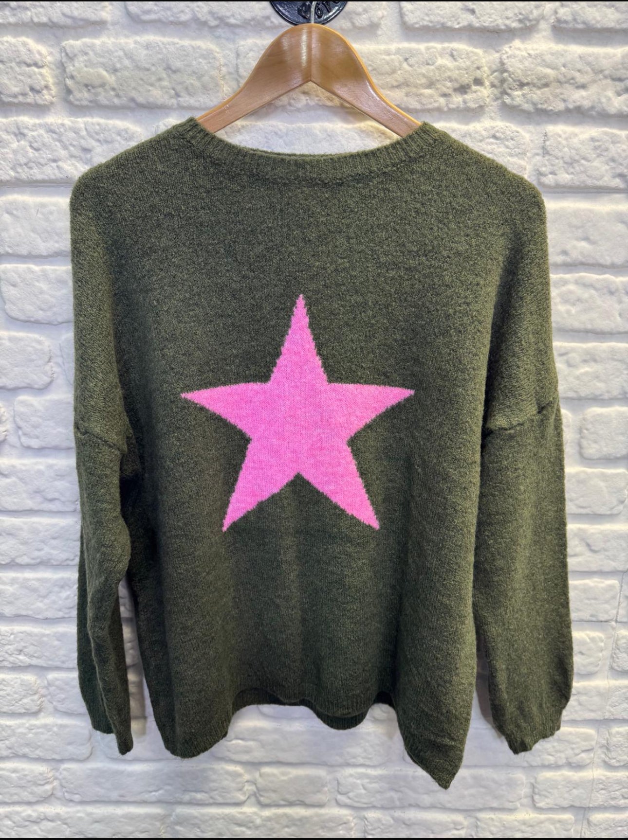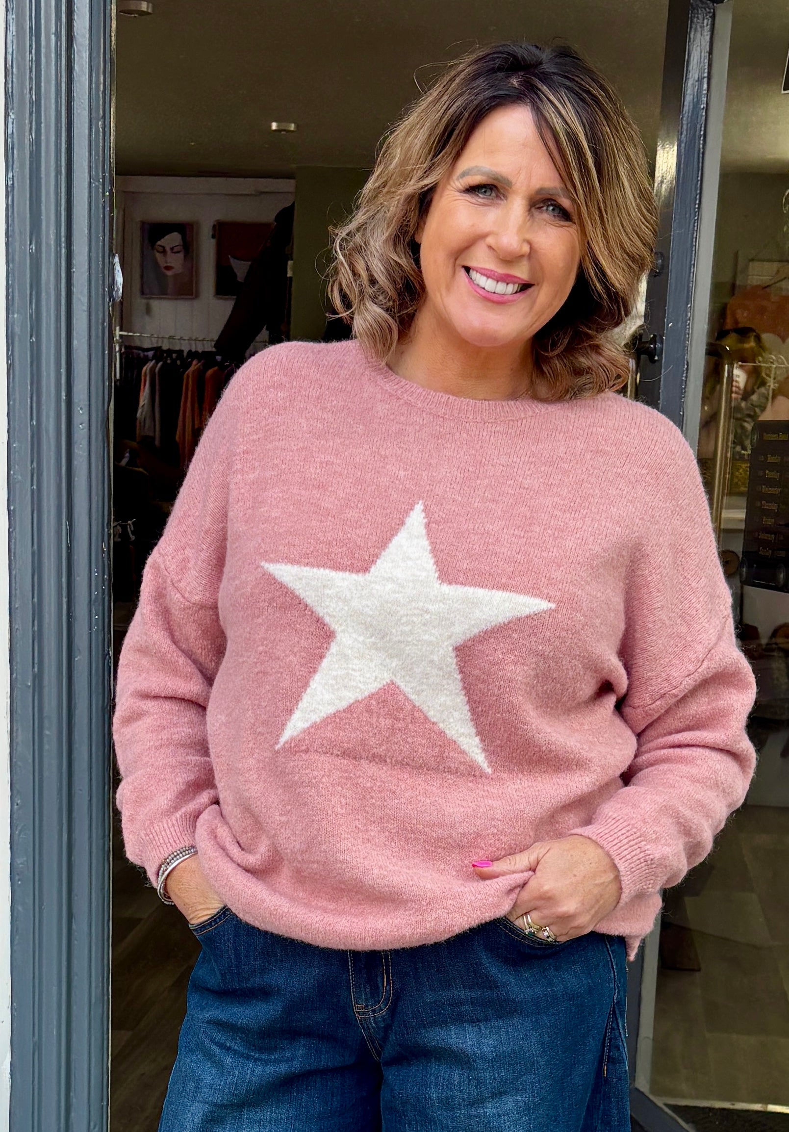 A gorgeous soft knit sweater with a contrast large star on the chest. A fabulous cross season item to list your spirits with a flash of brightness.