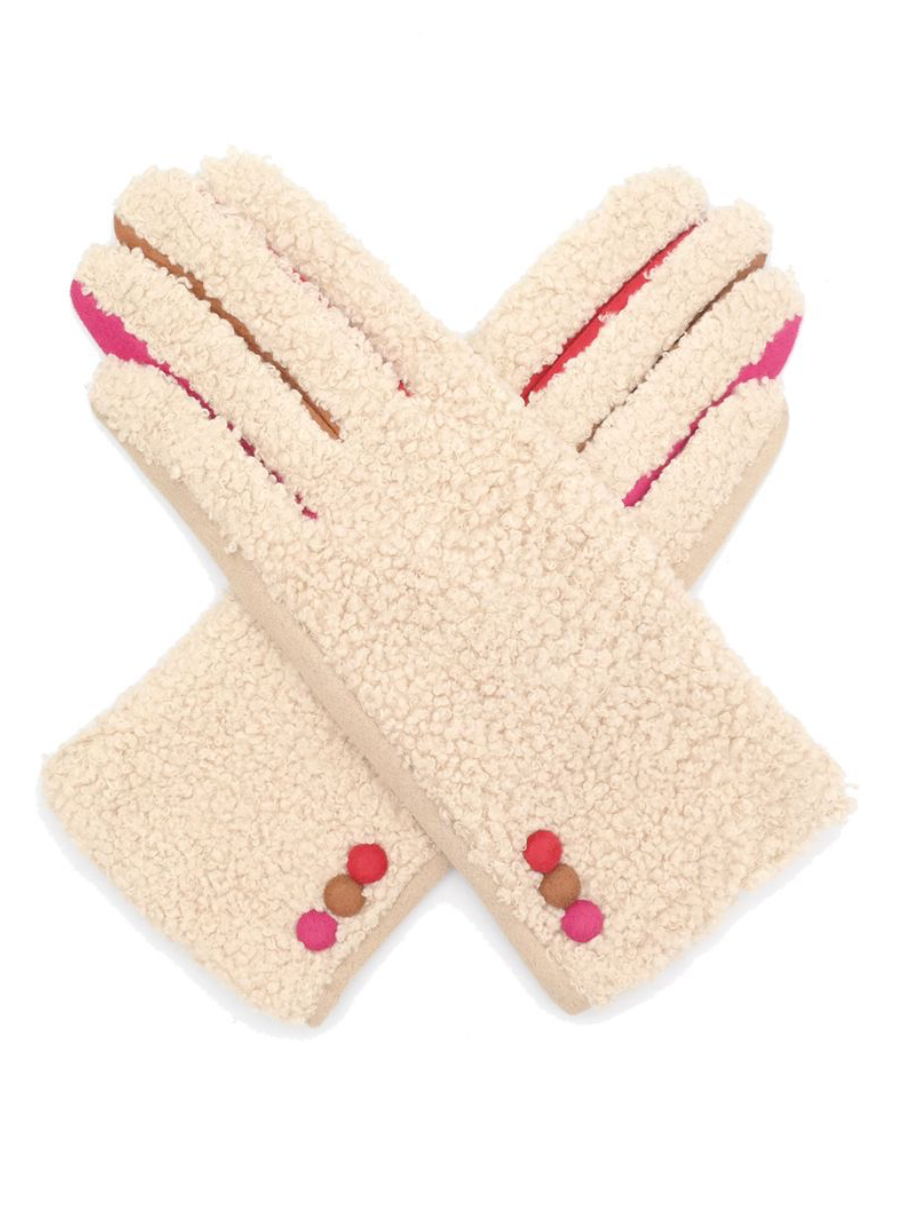 Boucle Gloves in Cream & Olive