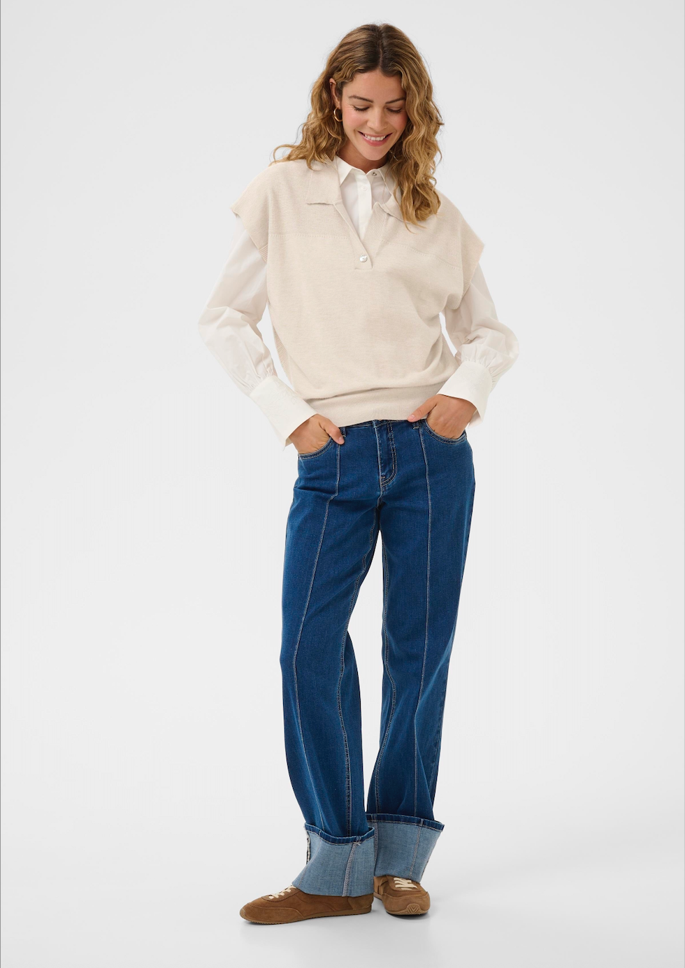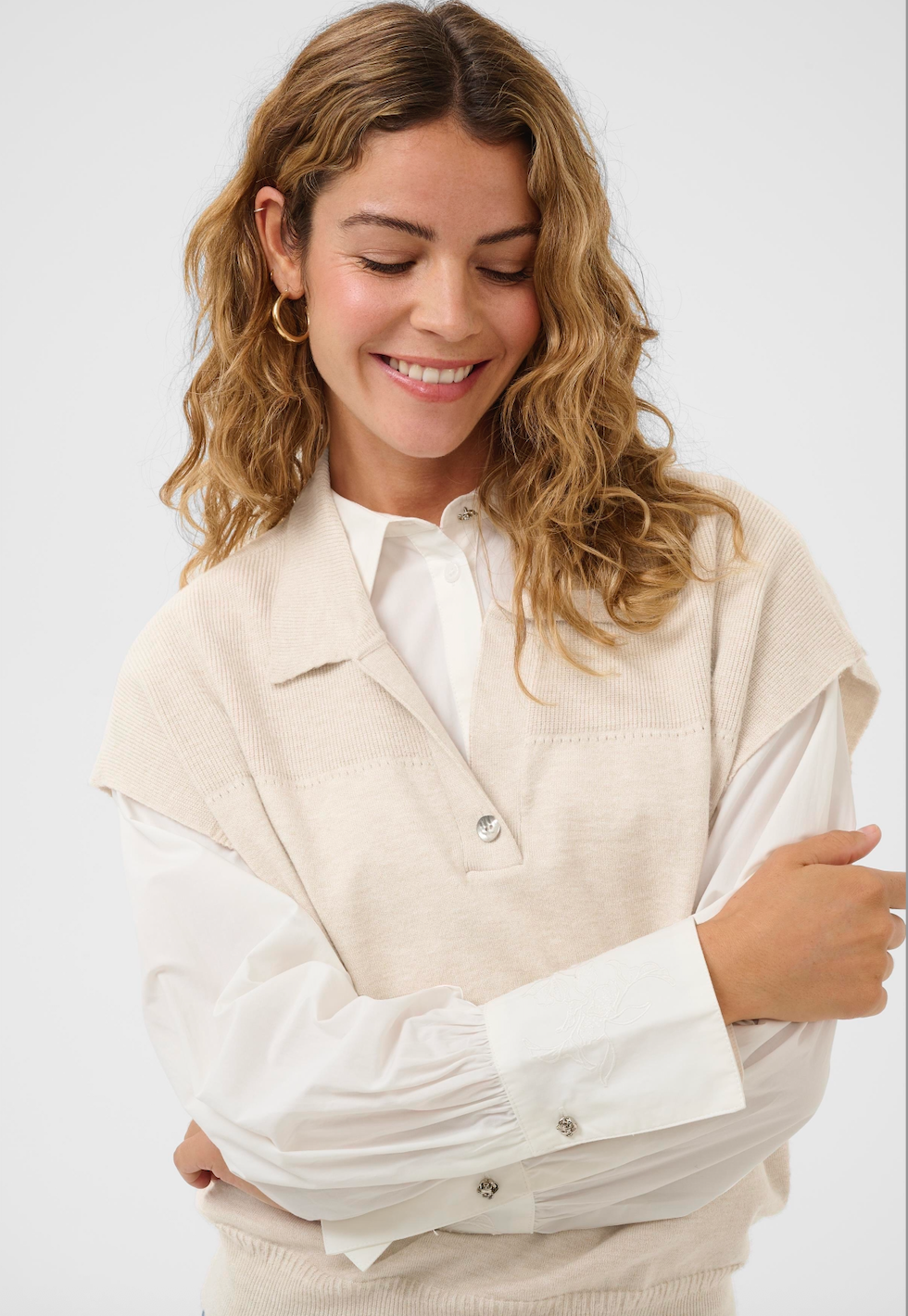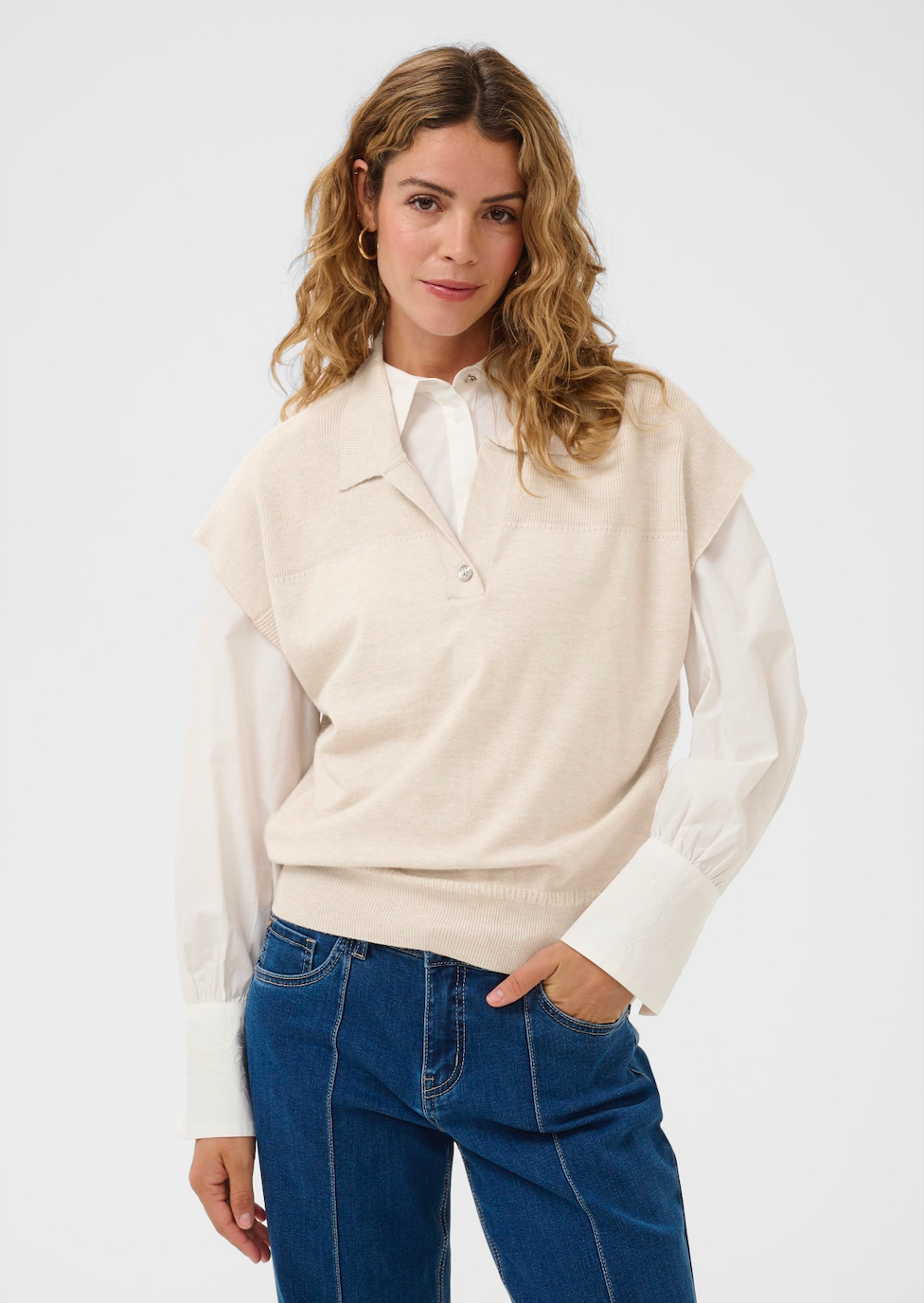 This women's knit vest top offers a relaxed fit, short sleeves and a classic polo collar with button detail. Designed for comfort and versatile layering, it's ideal for nothing casual and office wear throughout the year.