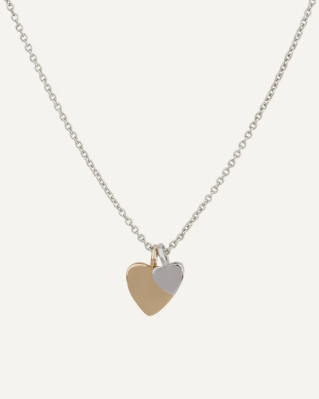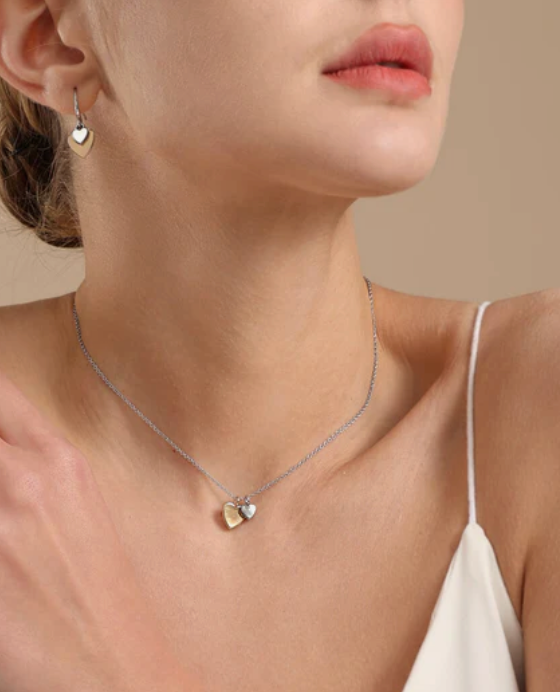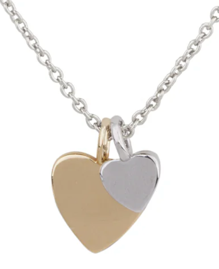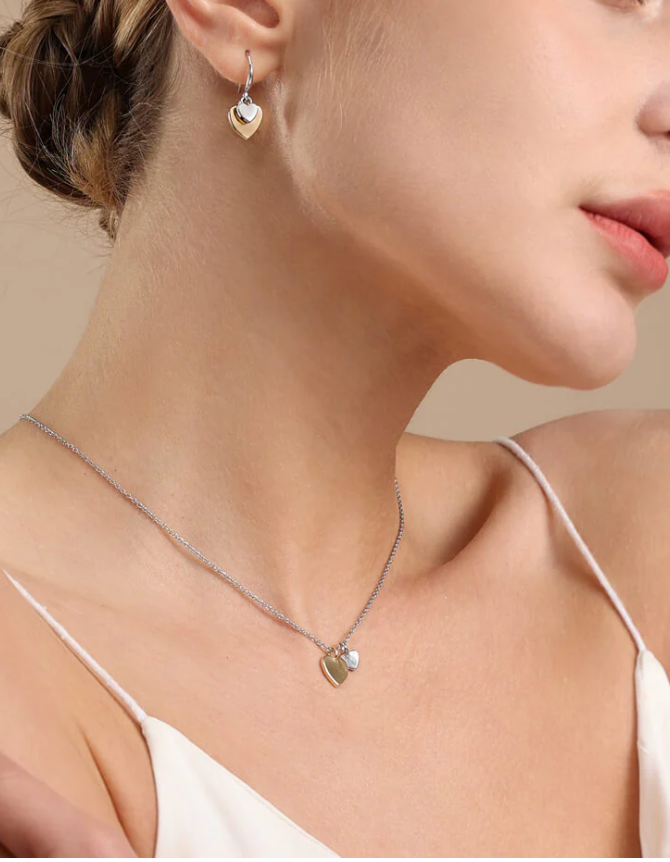 A simple mixed metal design, the striking difference between gold and silver elevates this piece's subtle heart duo pendants, accentuating its eye-catching and modern elements. Perfect for almost all kinds of outfits, wear this necklace with pride!