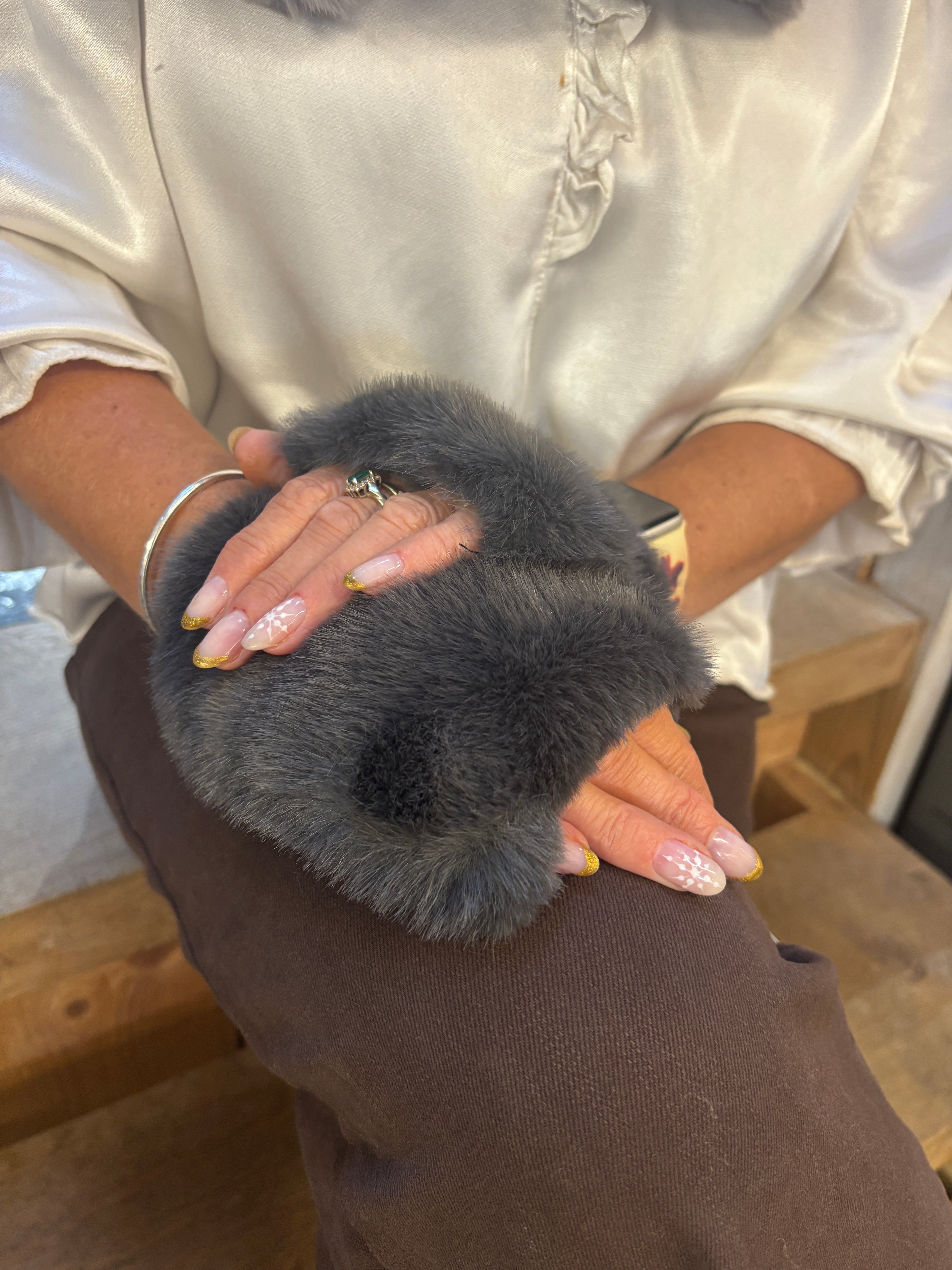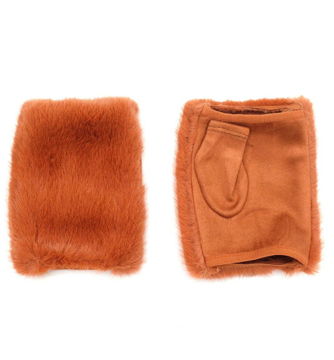 Uber soft faux fur fingerless gloves.
