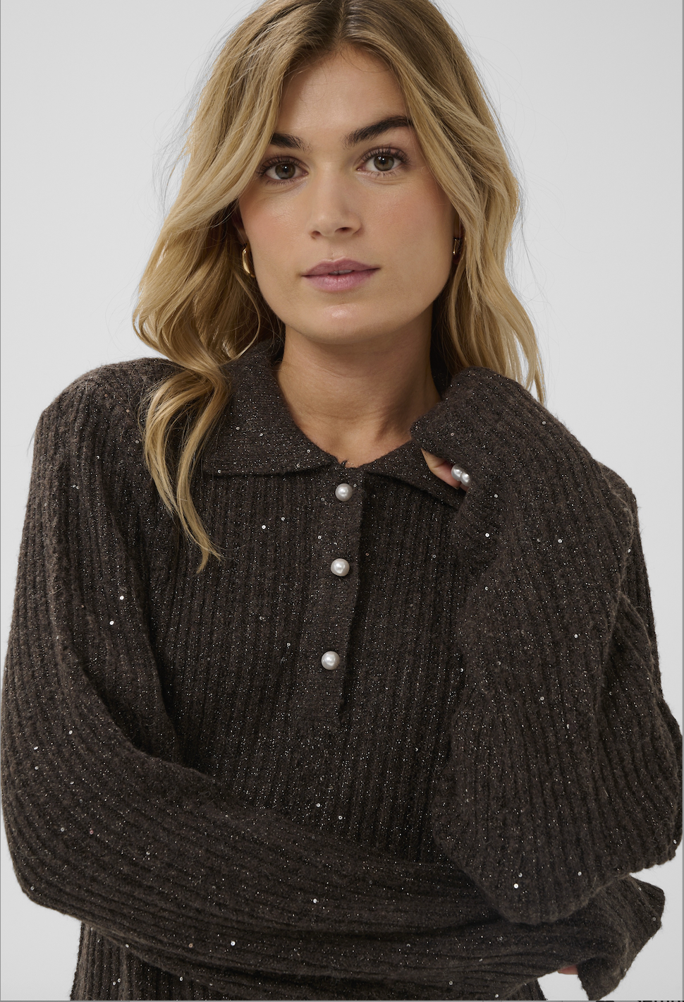 Jolly Knit Long Sleeved Polo Shirt in Java Brown