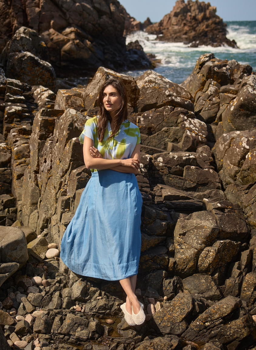 LIV 61 is a Skirt crafted entirely from 100% Lyocell. It has a simple design with subtle seam details and a midi length. This elegant skirt pairs beautifully with a fitted blouse or casual tee for any occasion.