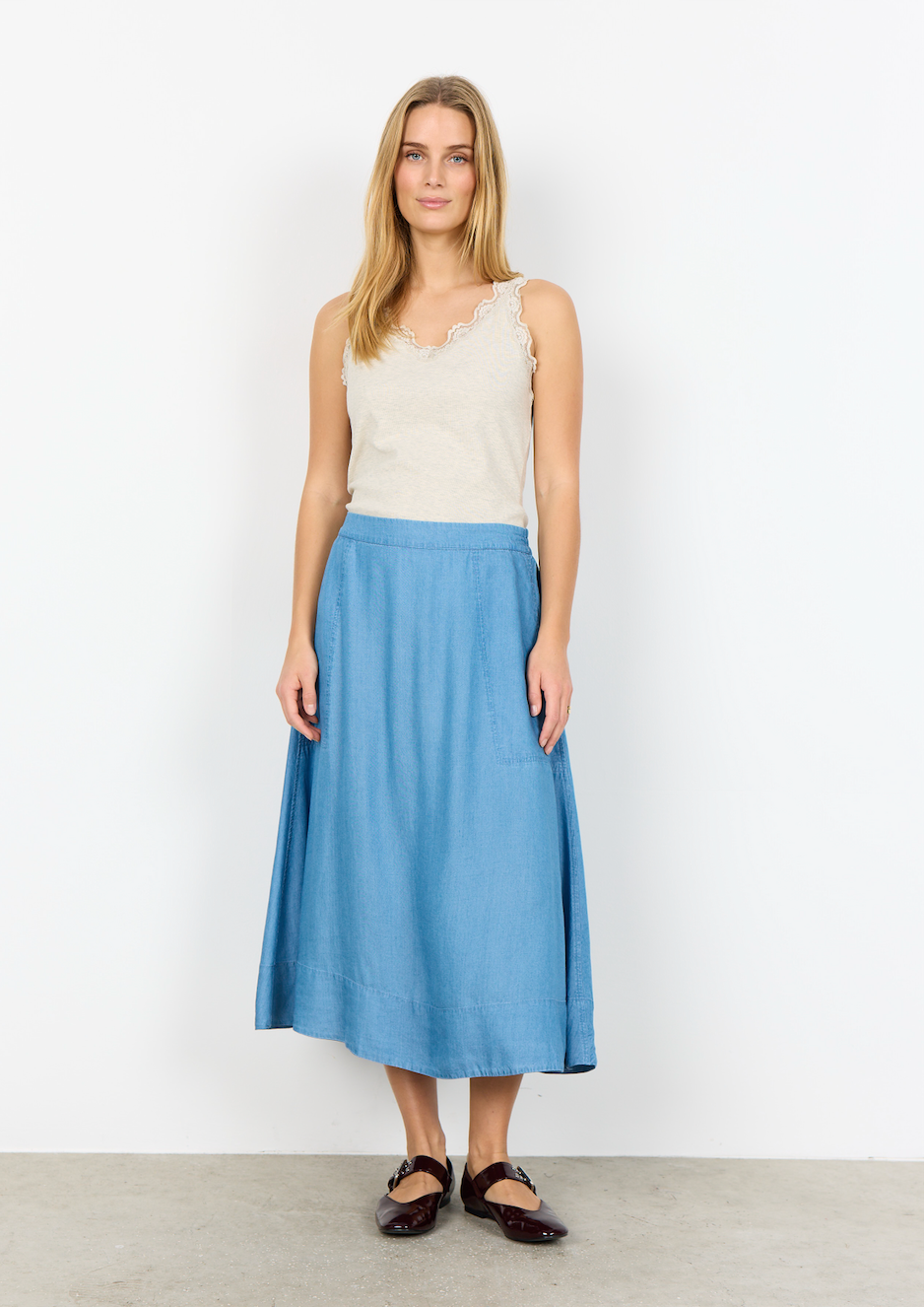 Liv 61 Midi Skirt in Medium Blue