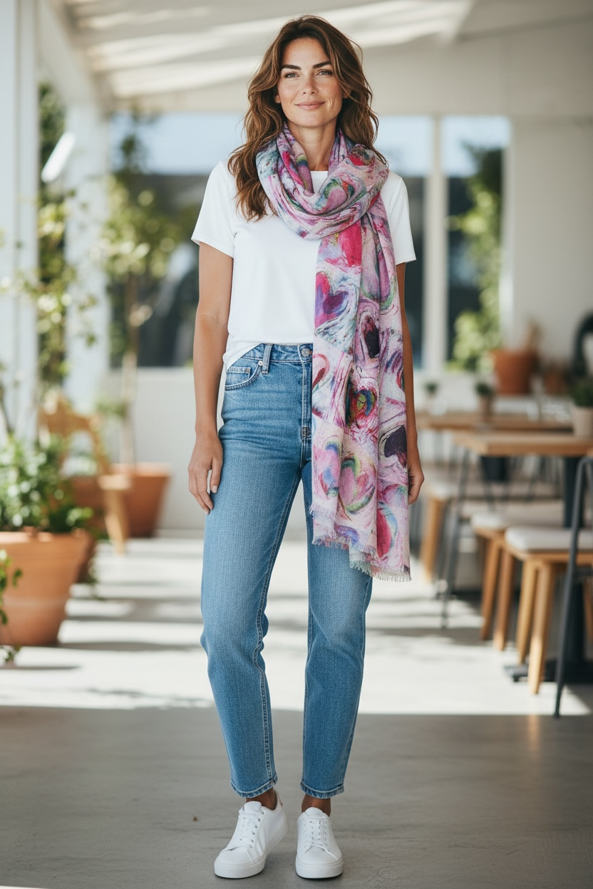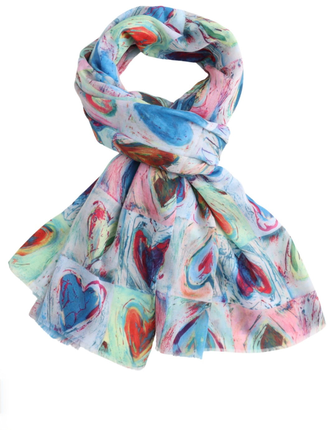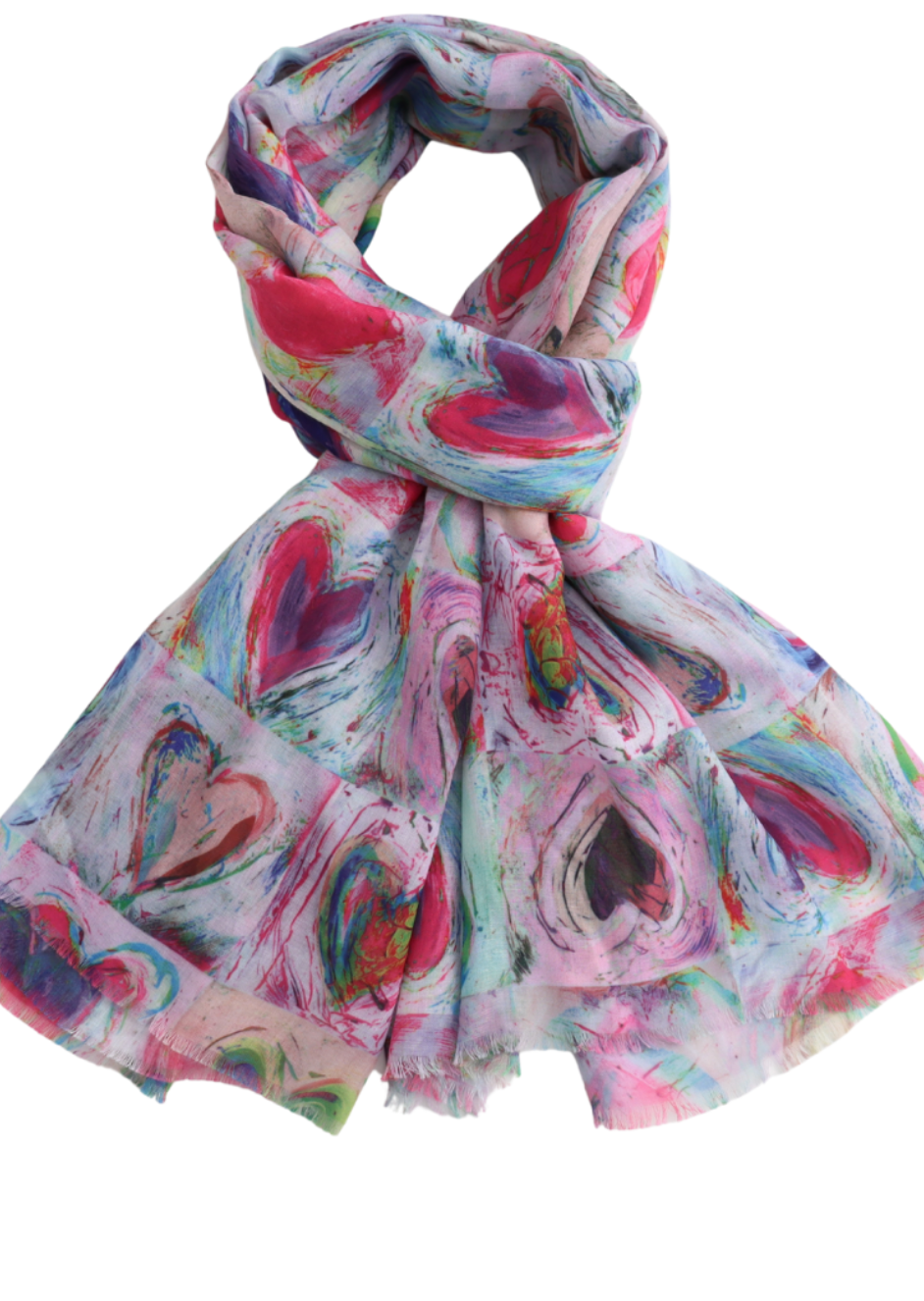 Beautiful washed multi print heart scarves. The perfect gift of love.