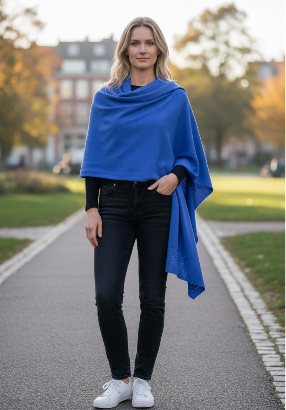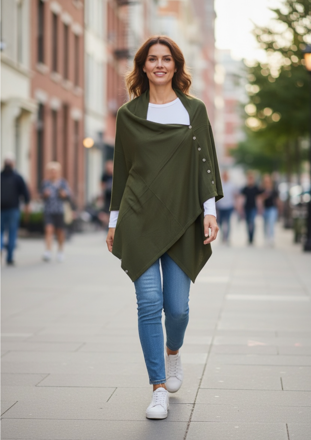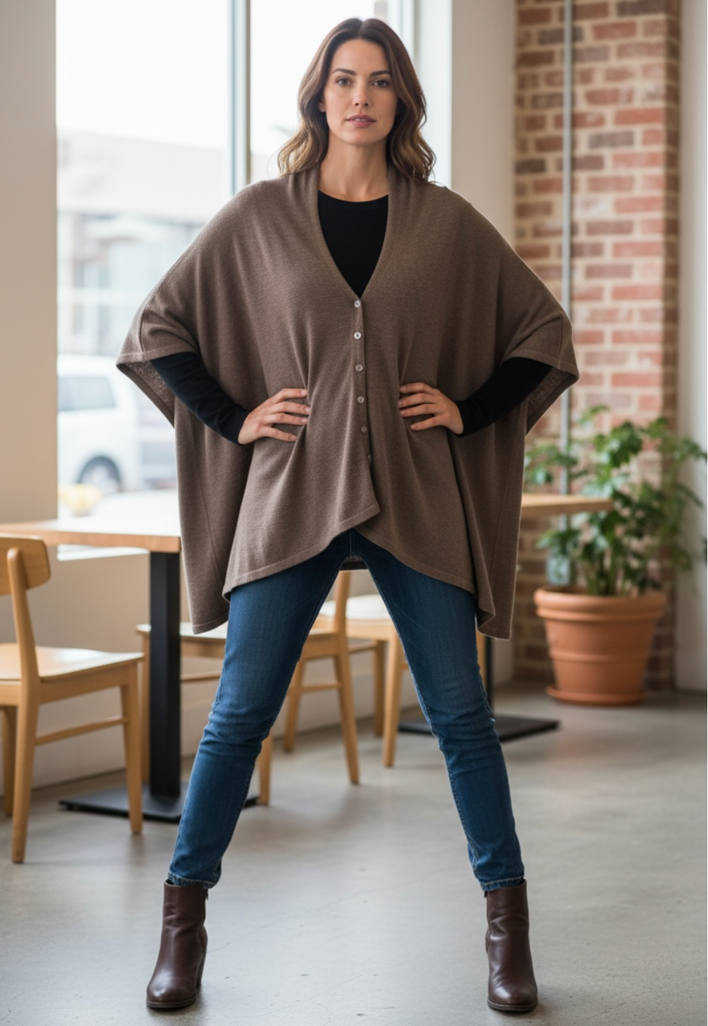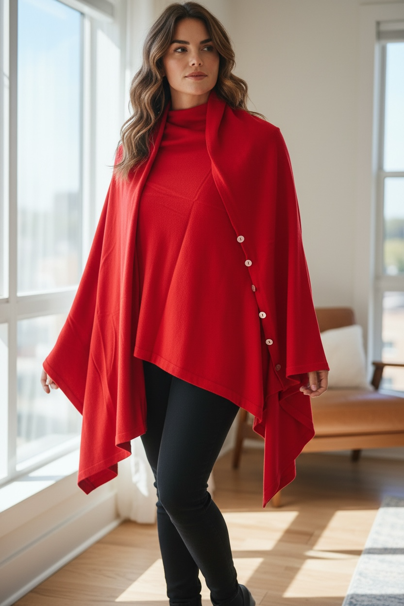 A stunning multi-wear knit in a beautifully soft fabric and mother of pearl buttons. A must have wardrobe staple with enormous versatility - wear as a poncho, throw, scarf, stole, cardigan or wrap. In a choice of colours and made from the softest fabric.