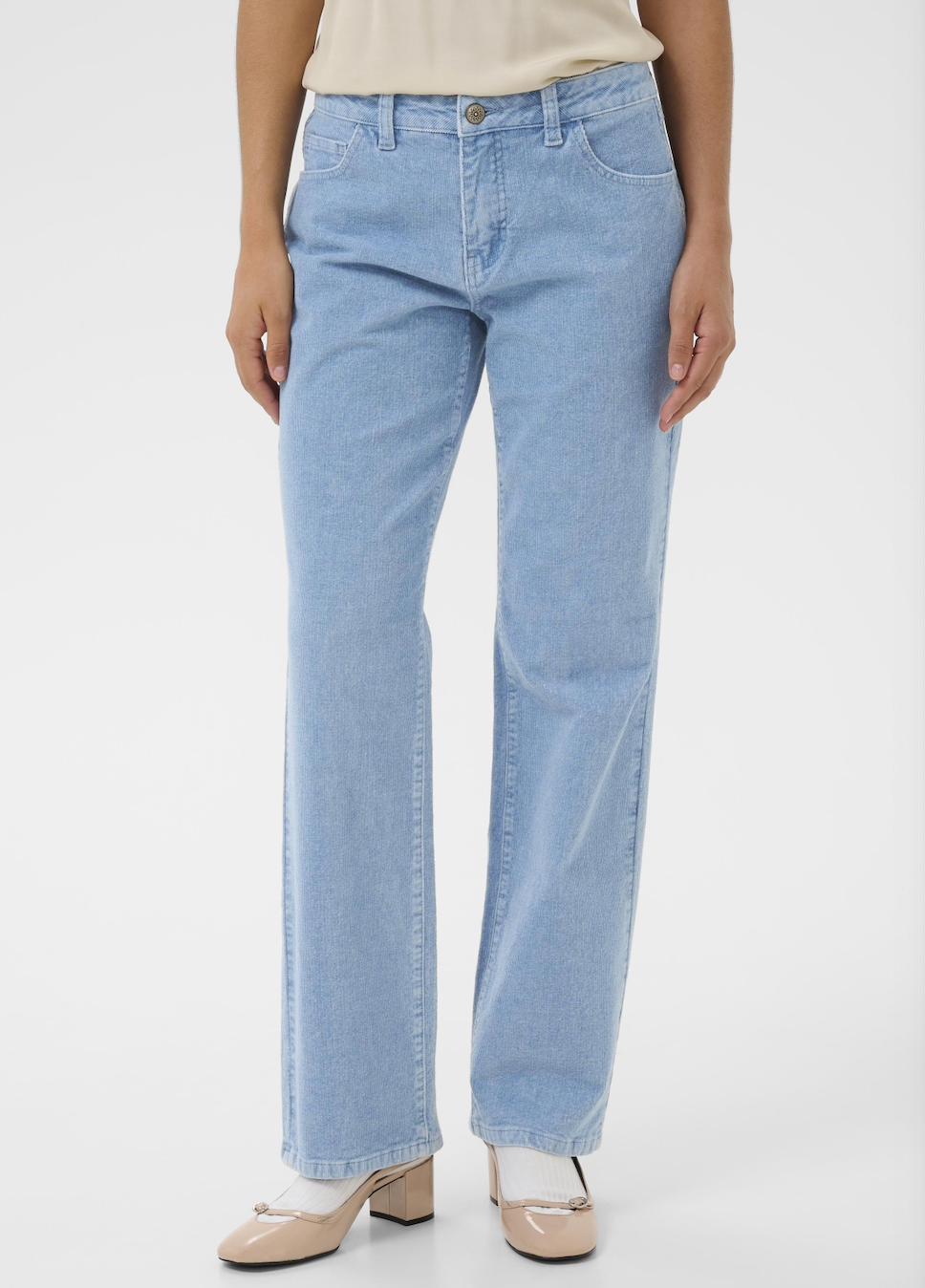 Women's straight leg jeans offer a classic mid-rise fit for everyday comfort. Thoughtfully designed with five functional pockets and a zip fly, these jeans are a versatile choice for both casual and smart occasions.
