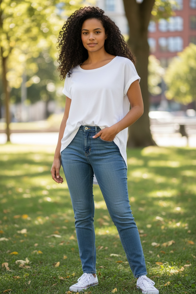 Short Sleeve Tee with curved hemline in White