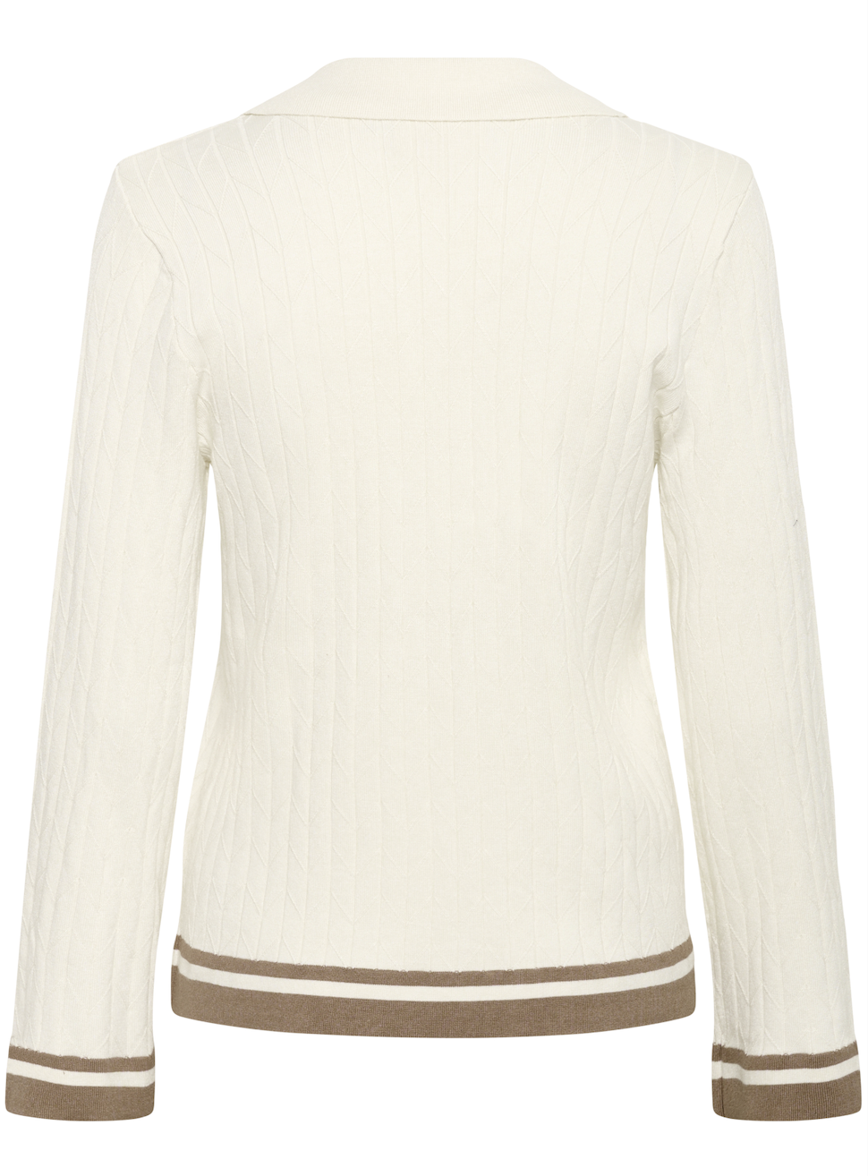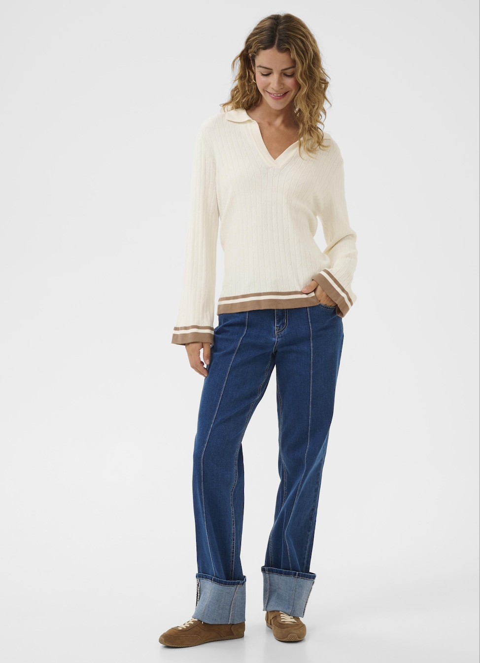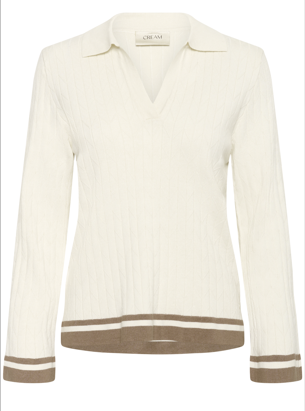 This women's knit pullover sweater features a classic relaxed fit, V-neck with collar, and long sleeves. Subtle rib-knit design and contrast trim offer versatile style and comfort for everyday wear.
