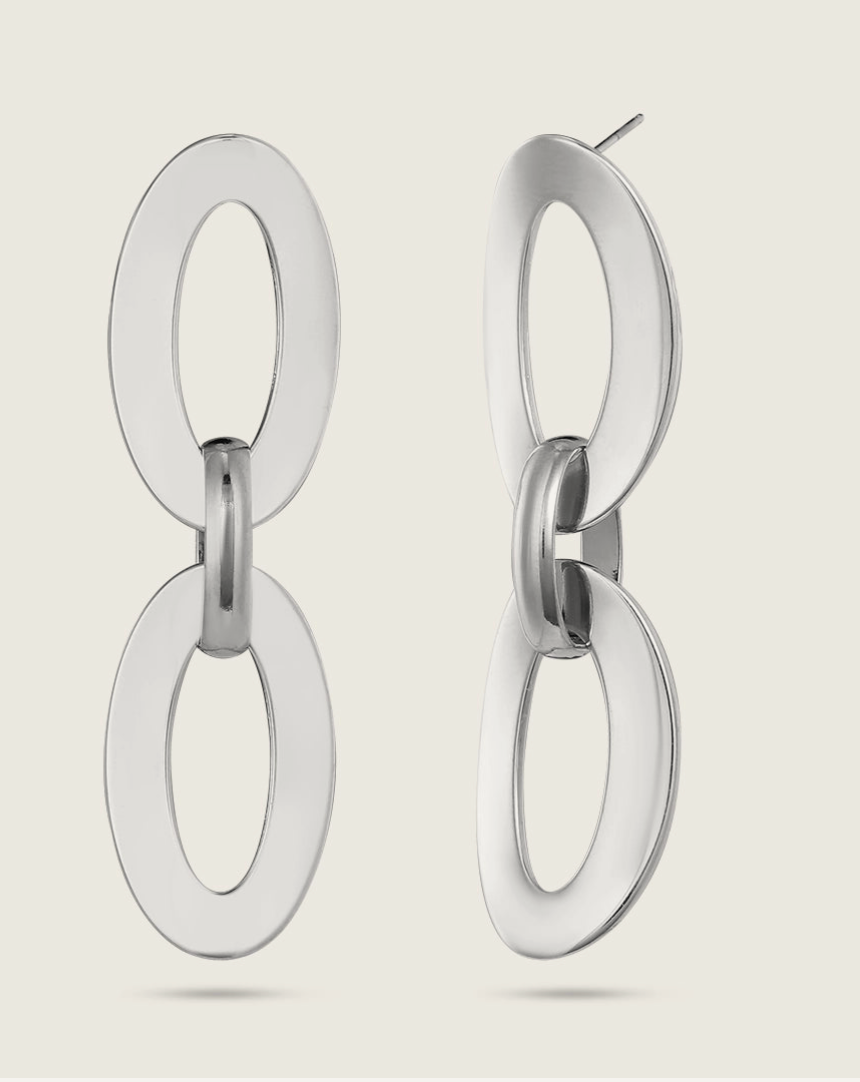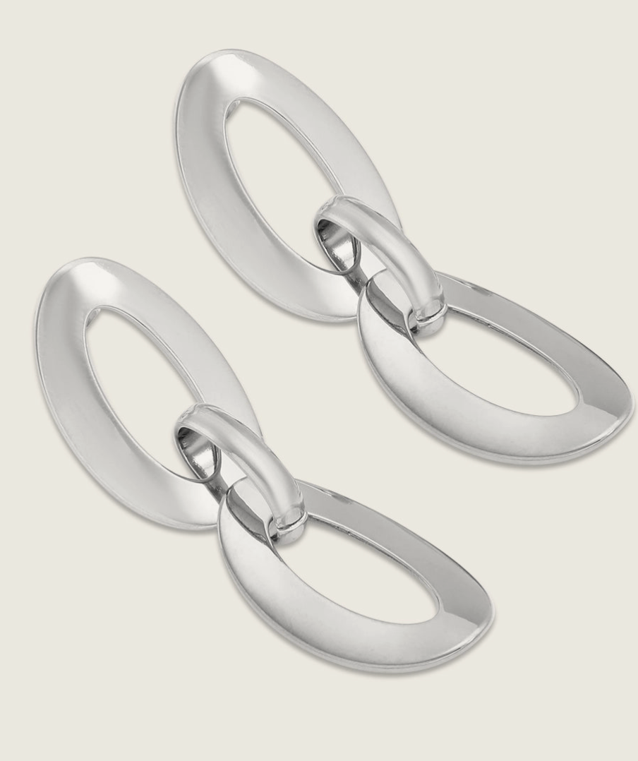 Keep it classy with these large polished silver double oval drop stud earrings with adjoining loop.
